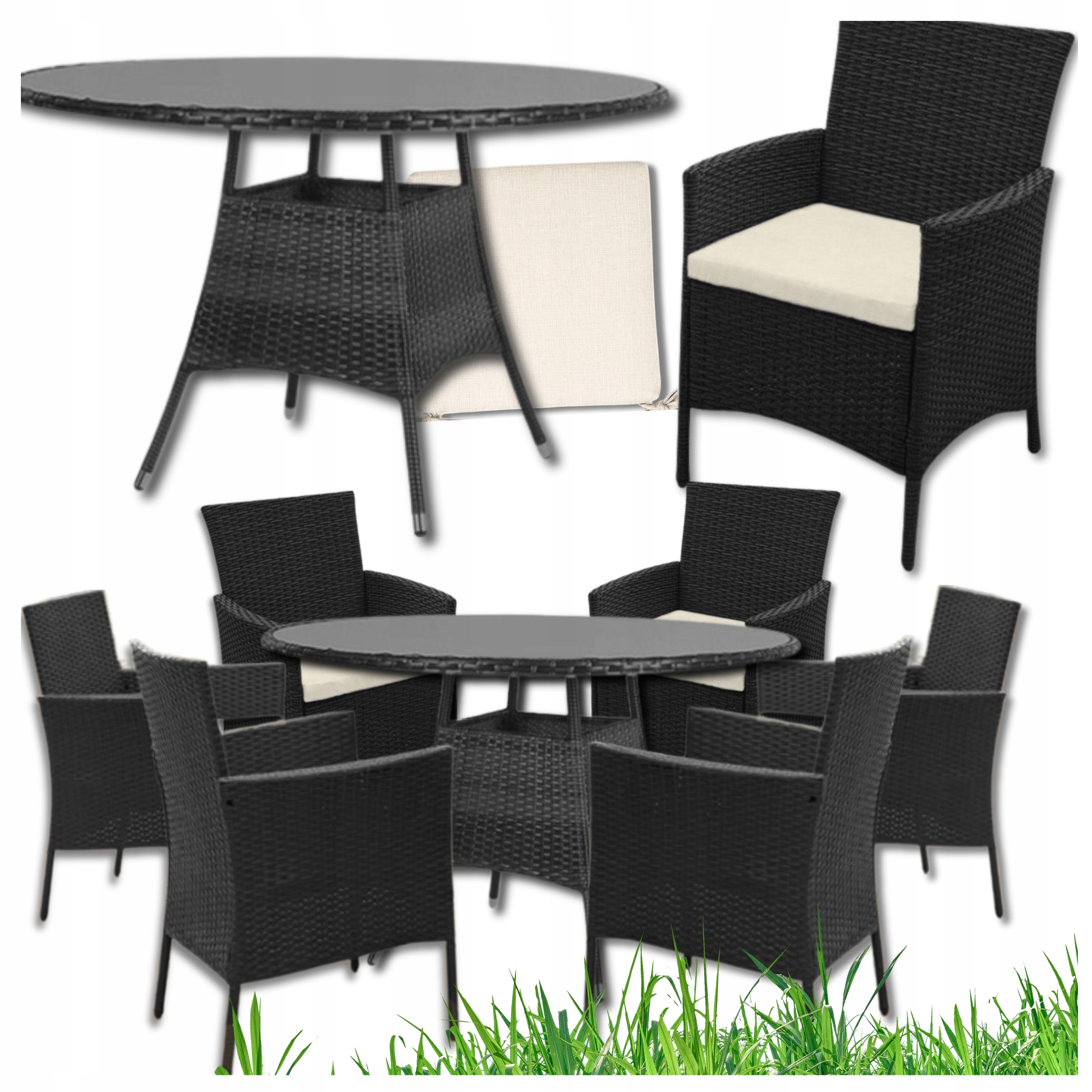 Zestaw Mebli Ogrodowych TECHNORATTAN Stół + 6 Foteli + Poduszki CZARNY 13el Zawartość zestawu fotel stół inny element